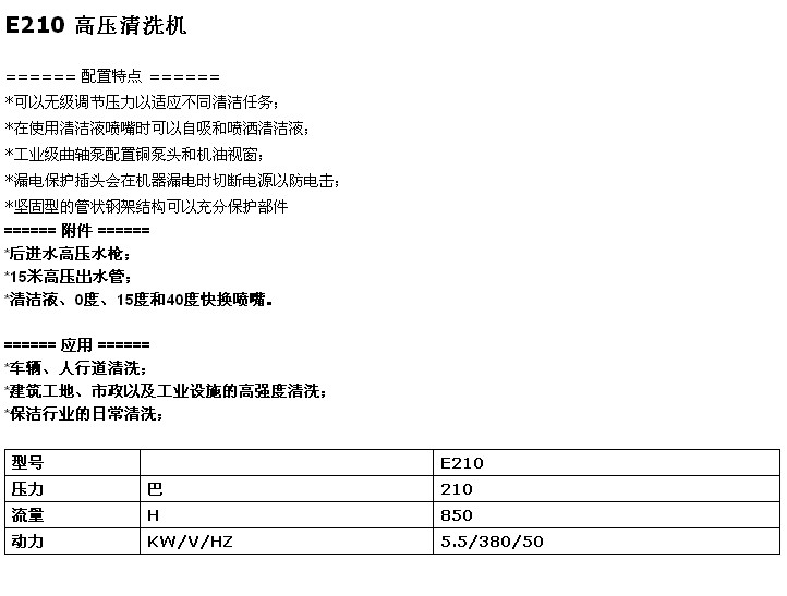 主頁  > 產品展示  > 商用清潔設備  > E210 高壓清洗機